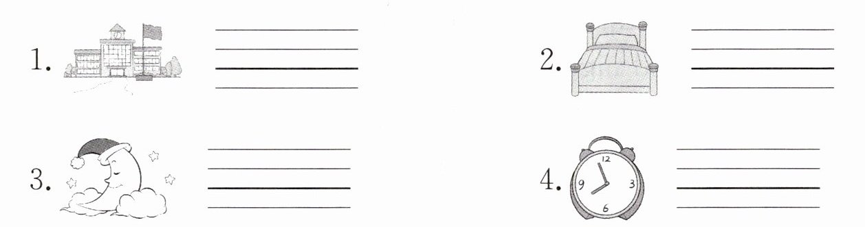 Ⅰ. 我能选出与图片对应的单词并写在四线三格上。