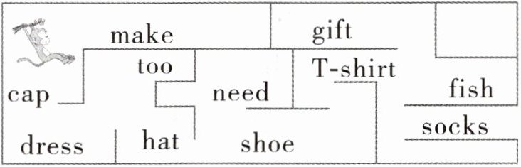 Ⅰ. 我能帮小猴子走出迷宫并按顺序写下会遇到的六个单词。