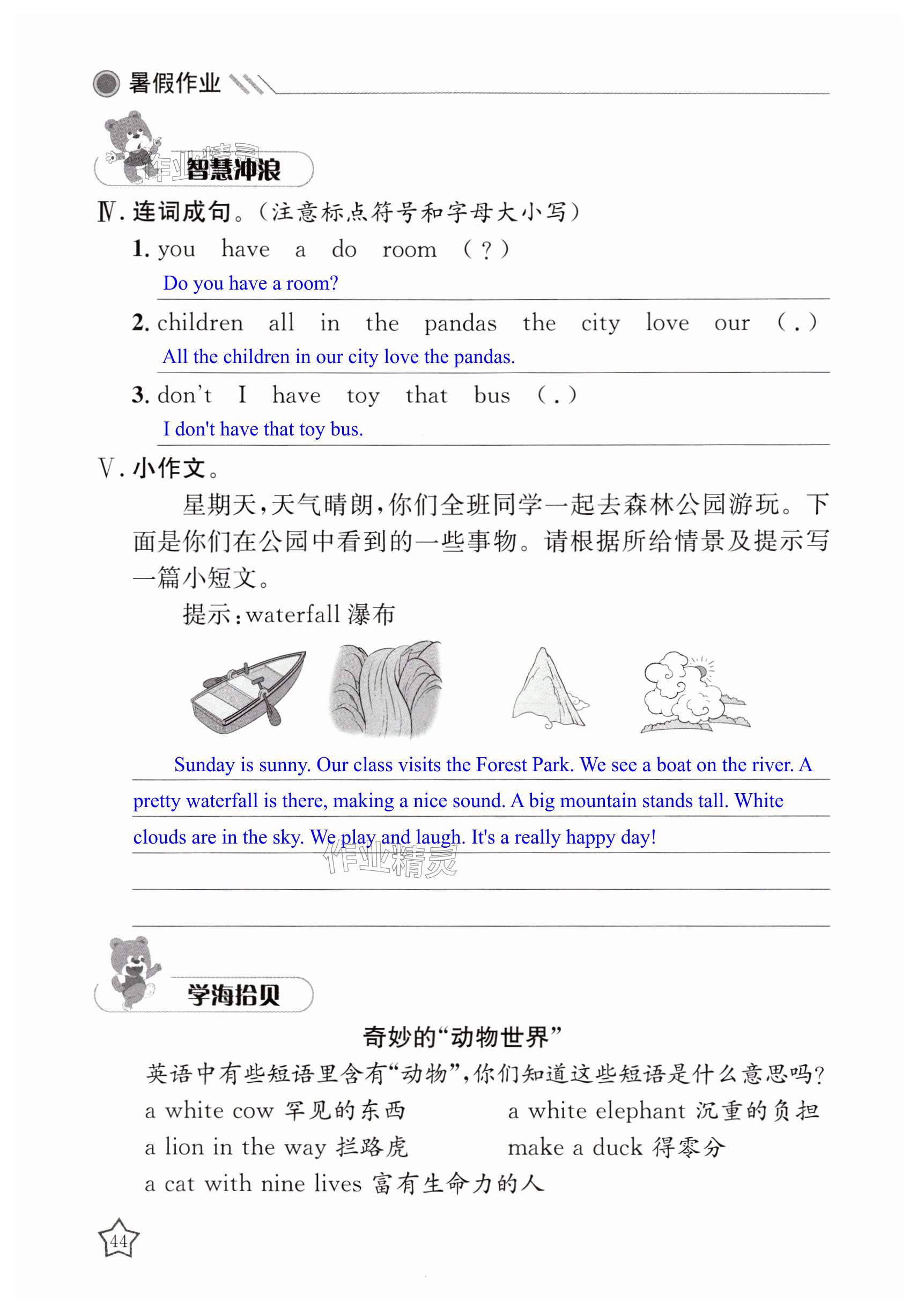 注:目前有些书本章节名称可能整理的还不是很完善,但都是按照顺序排列的,请同学们按照顺序仔细查找。练习册 2025年湘岳假期暑假作业四年级英语湘少版 答案主要是用来给同学们做完题方便对答案用的,请勿直接抄袭。