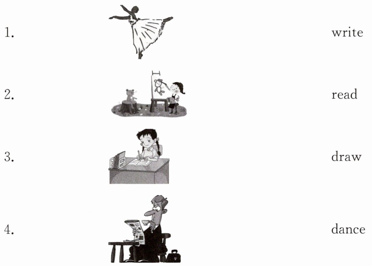 1. dance 2. draw 3. write 4. read