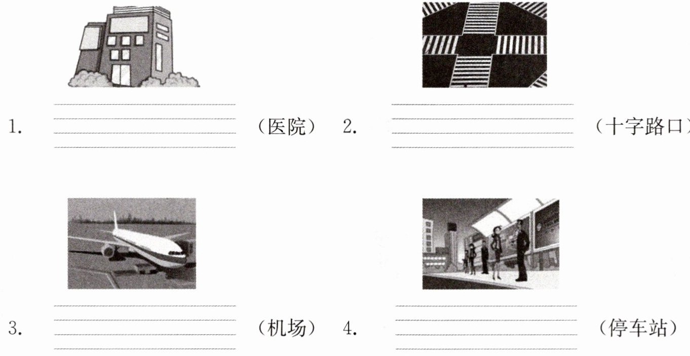 一、根据图片及汉语意思,在下面的英语四线格中写出正确的单词。