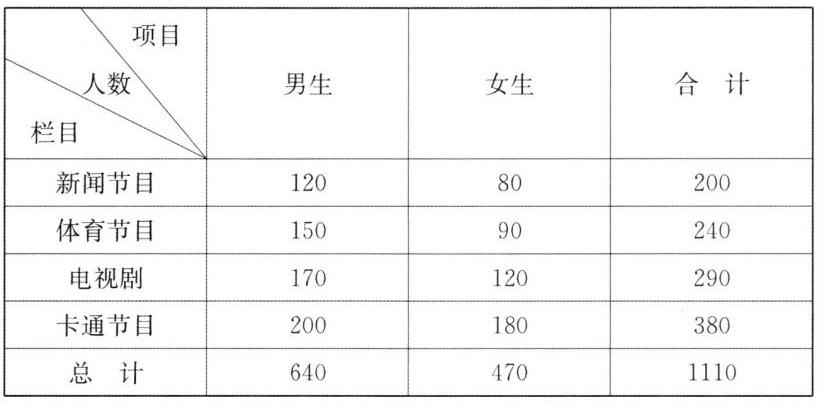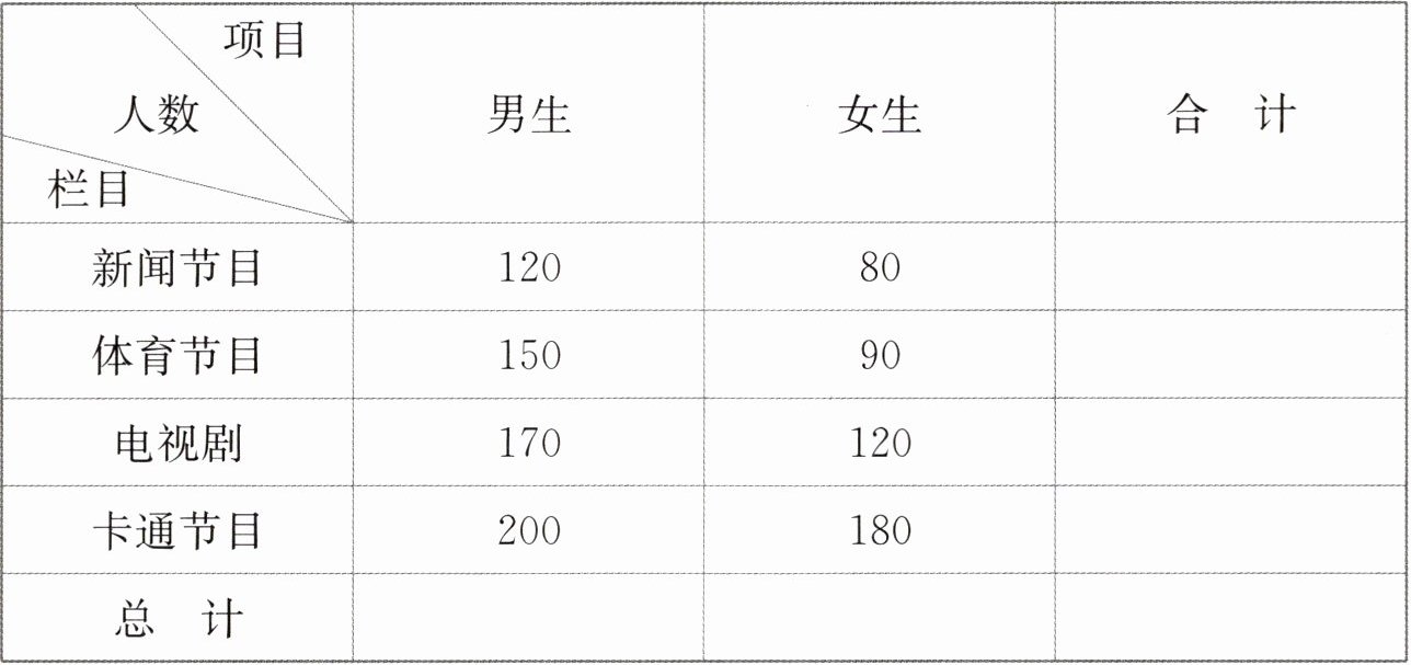 (4)小学男女生都喜欢卡通节目。(答案合理即可)