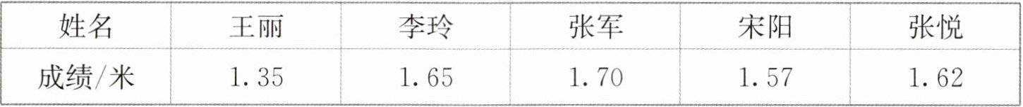25. 下面是四(1)班一组同学的跳远成绩统计表,仔细读表并回答问题。