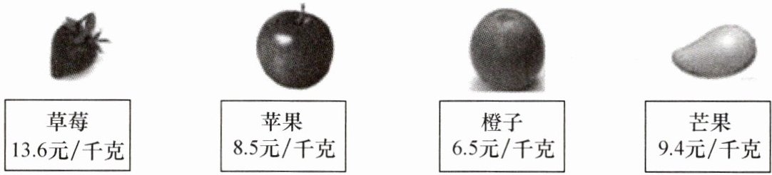 。(2)买 1 千克草莓比 1 千克苹果贵多少钱?