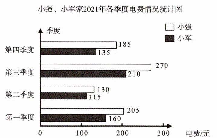 元。3. 小军家全年电费多少元?平均每季度电费多少元?