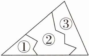2. 实验班原创 推理意识 一块三角形玻璃,小旭不小心摔成如右图所示的三小块,现在要重新配一块和原来一样的玻璃,只需要带(