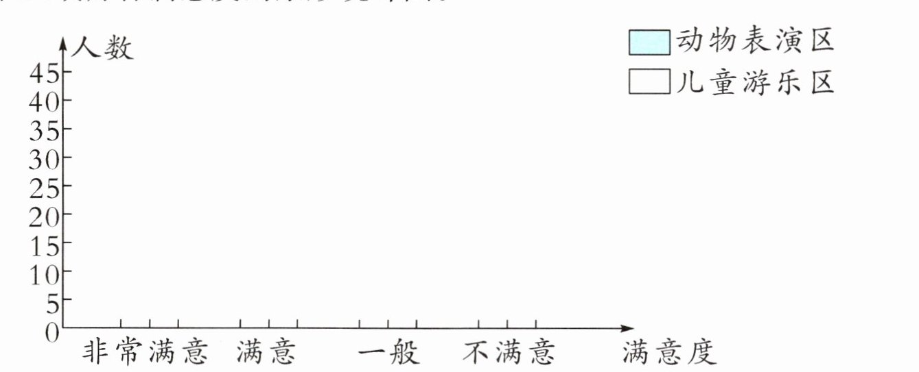 动物表演区:非常满意30人,满意40人,一般20人,不满意10人。