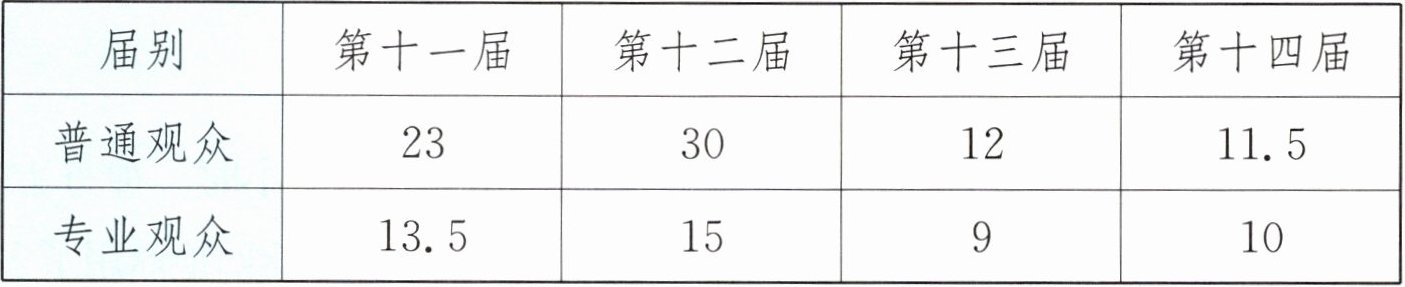 6. 中国航展观众人数中国国际航空航天博览会是最具国际影响力的航空航天类专业展会之一,每一届都吸引着几十万来自世界各地的航天爱好者来到航展现场。下面是近四届中国航展的大致观众人数统计表。(单位:万人)