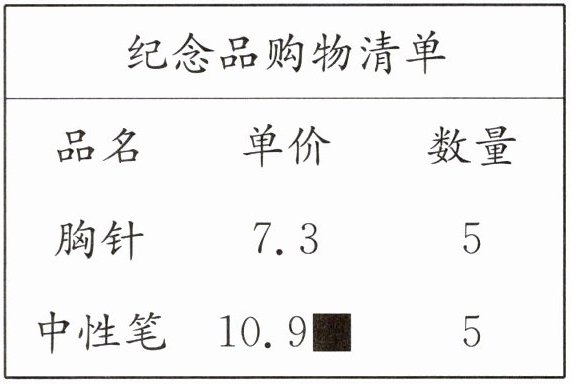 6.张阿姨带了100元去纪念品商店购物,下图为张阿姨的购物清单(“■”代表一个数字)。