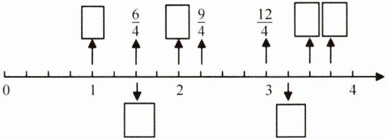 直线上面:$\boldsymbol{\frac{4}{4}}$、$\boldsymbol{\frac{8}{4}}$、$\boldsymbol{\frac{14}{4}}$、$\boldsymbol{\frac{15}{4}}$;