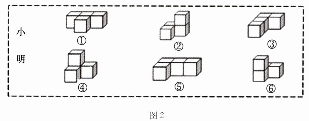 (2)从正面看,小明搭的积木中形状相同的是______和______,或者是______和______。