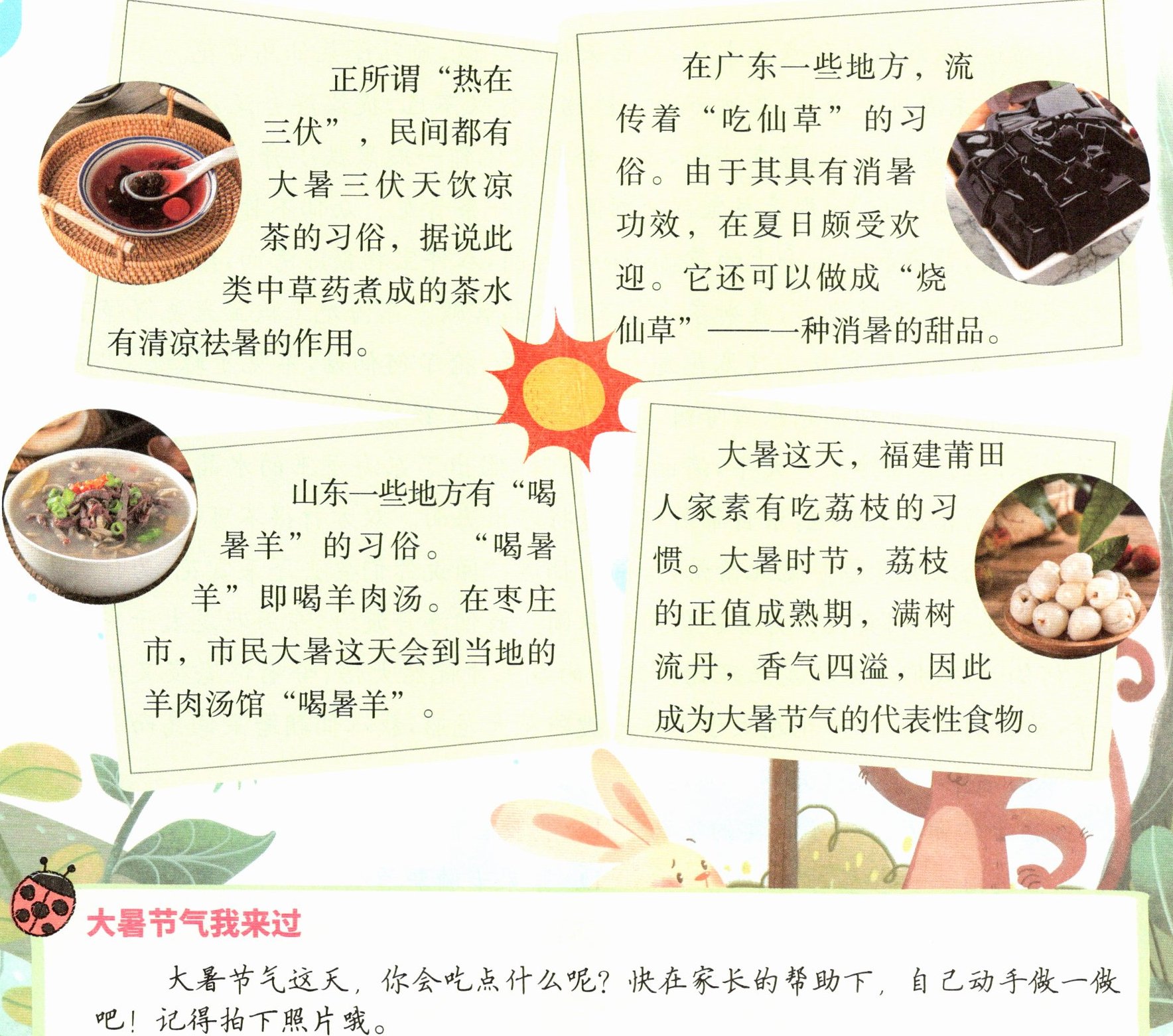 可以选择当地大暑时节有特色的食物来制作,例如在广东地区可以制作烧仙草,准备仙草粉、水、蜂蜜、水果等材料,先将仙草粉和水按比例混合煮成浓稠状,冷却凝固后切成小块,加入蜂蜜和喜欢的水果即可;若是福建莆田地区,可以做荔枝配羊肉,将羊肉洗净切块,焯水后加入调料炖煮至熟烂,搭配新鲜荔枝一起食用。制作完成后用相机或手机拍下美食照片。