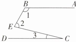 5. 如图,$AB// CD$,则$∠1,∠2,∠3$之间的关系是()