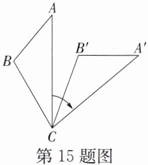 15. 如图,将$\triangle ABC$绕着点C顺时针方向旋转$50^{\circ}后得到\triangle A'B'C'$. 若$∠A= 40^{\circ}$,$∠B= 110^{\circ}$,则$∠BCA'$的度数是______.