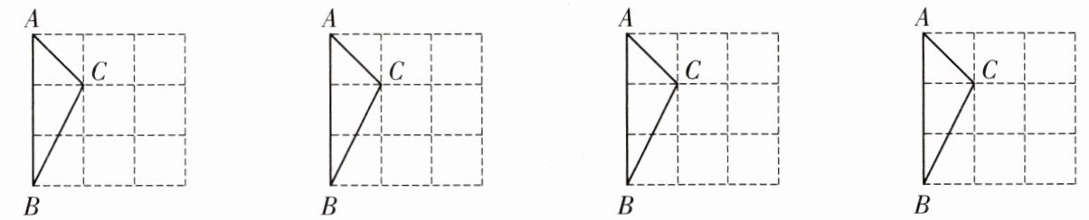 16. 在$3×3$的正方形网格中,$\triangle ABC和\triangle DEF$是关于某条直线成轴对称的两个格点三角形(顶点在网格线交点上的三角形). 现给出了$\triangle ABC$,在如图所示的图中画出4个符合条件的$\triangle DEF$,并画出对称轴.