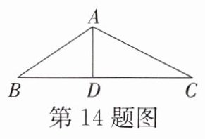 14. 如图,在$\triangle ABC$中,点D在边BC上,$AD\perp BC$,$AD= 2$,$BD= 3$,$CD= 4$,将$\triangle ABC$绕着点D旋转,使得点A的对应点$A'$落在边BC上,点B,C的对应点分别是点$B'$,$C'$,则$\triangle A'B'C'$的面积等于______.