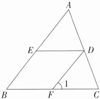 34. 如图,$\triangle ABC$中,$D是AC$上一点,过$D作DE// BC交AB于E$点,$F是BC$上一点,连接$DF$. 若$\angle 1= \angle AED$.