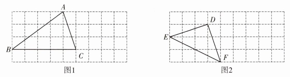 32. 下面两个网格图都是由相同的小正方形组成的,$\triangle ABC和\triangle DEF$的顶点都在格点,请按下列要求在相应的网格中作图.