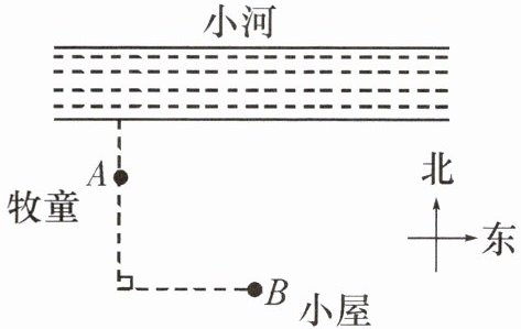 12. 如图,一个牧童在小河的南 4 km 的 A 处牧马,而他正位于他的小屋 B 的西 8 km 北 7 km 处,他想把他的马牵到小河边去饮水,然后回家。他要完成这件事情所走的最短路程是多少?