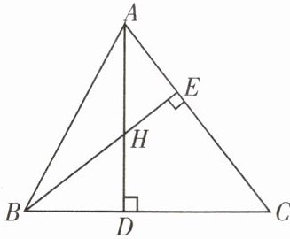 9. 如图,$AD$,$BE为\triangle ABC$的高,$AD$,$BE相交于点H$,若$\angle C = 50^{\circ}$,求$\angle BHD$的度数。