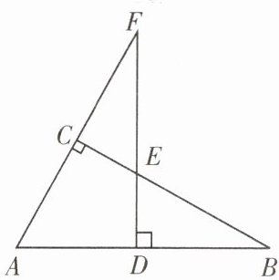 10. 如图,在$\triangle ABC$中,$\angle ACB = 90^{\circ}$,$F是AC$延长线上一点,$FD \perp AB$,垂足为$D$,$FD与BC相交于点E$,若$\angle BED = 55^{\circ}$。求$\angle A$的度数。