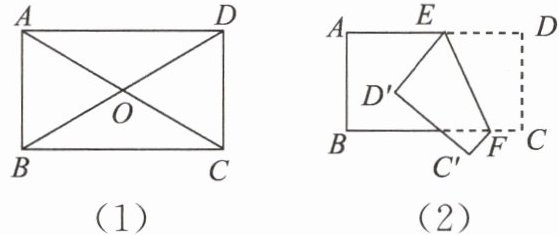 4. 如图(1)所示,矩形 ABCD 的两条对角线相交于点 O,$∠AOB= 60^{\circ },$ $AB= 2$,则矩形的对角线 AC 的长是().