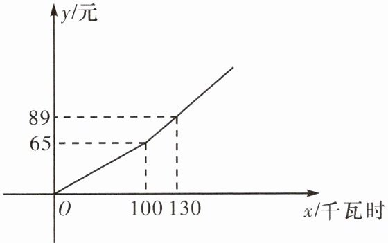 (2)用电量不超过 100 千瓦时时,收费标准为 0.65 元/千瓦时;用电量超过 100 千瓦时时,不超过 100 千瓦时部分的收费标准为 0.65 元/千瓦时,超过 100 千瓦时部分的收费标准为 0.8 元/千瓦时