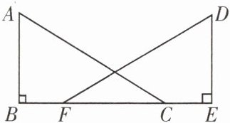 11. 如图,点 $ B $,$ F $,$ C $,$ E $ 在同一直线上,$ BF = CE $,$ AB \perp BE $,$ DE \perp BE $,垂足分别为 $ B $,$ E $ 且 $ AB = DE $,连接 $ AC $,$ DF $.
