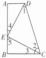 (2)$ \triangle CDE $ 是直角三角形,由 $ Rt\triangle ADE \cong Rt\triangle BEC $ 得,$ \angle 3 = \angle 4 $,从而得 $ \angle 4 + \angle 5 = 90^{\circ} $,则 $ \angle DEC = 90^{\circ} $,即 $ \triangle CDE $ 是直角三角形.