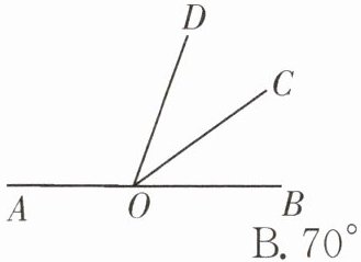 5. 如图,点O在直线AB上,射线OC平分∠DOB.若∠COB= 35°,则∠AOD等于()。