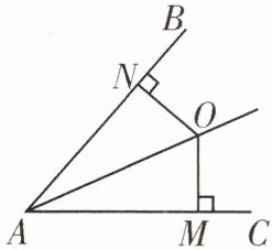2. 如图,AO是∠BAC的平分线,OM⊥AC于点M,ON⊥AB于点N,若ON= 8cm,则OM的长为()。