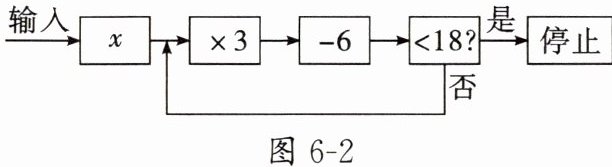 8. 运行程序如图6-2所示,从“输入实数$x$”到“结果是否小于18”为一次程序操作.