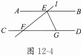 4. 如图12-4,已知$AB// CD$,直线$l分别交AB$,$CD于点E$,$F$,$EG平分∠BEF$.若$∠EFC= 140^{\circ }$,则$∠EGF$的度数是()。