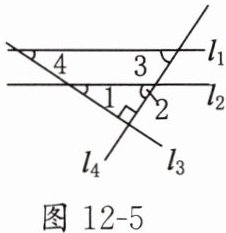 5. 如图12-5,直线$l_{1}// l_{2}$,$l_{3}⊥l_{4}$,给出下列三个结论:①$∠1+∠3= 90^{\circ }$;②$∠2+∠3= 90^{\circ }$;③$∠2= ∠4$.下列说法正确的是()。
