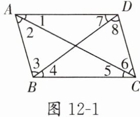 1. 如图12-1,如果$AB// CD$,那么下列说法错误的是()。