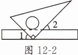 2. 如图12-2,将一块三角尺的直角顶点放在直尺的一边上.如果$∠1= 50^{\circ }$,那么$∠2$的度数是()。