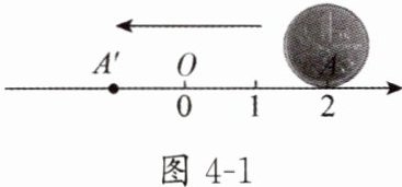 3. 如图 4 - 1,点 $ A $ 是硬币圆周上一点,硬币与数轴上数 2 所对应的点紧靠着(点 $ A $ 与数 2 所对应的点重合). 假设硬币的直径为 1 个单位长度,将硬币按图示的方向滚动(无滑动)一圈,点 $ A $ 恰好与数轴上点 $ A' $ 重合,则点 $ A' $ 对应的实数是().