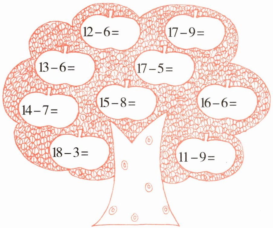 $ 12 - 6 = 6 $ $ 17 - 9 = 8 $ $ 13 - 6 = 7 $ $ 17 - 5 = 12 $ $ 14 - 7 = 7 $ $ 15 - 8 = 7 $ $ 16 - 6 = 10 $ $ 18 - 3 = 15 $ $ 11 - 9 = 2 $ 涂色略