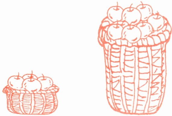 左 边 小 筐 中 有 10 个 苹 果 , 请 你 估