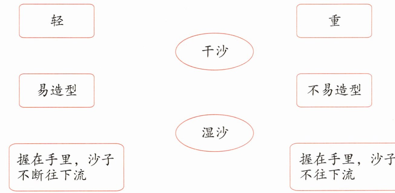 (3)干沙:轻、不易造型、握在手里,沙子不断往下流;湿沙:重、易造型、握在手里,沙子不往下流。