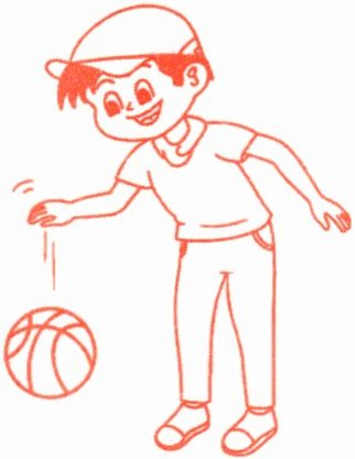 请你和毛毛一起拍20下篮球,感受一下拍球时身体的哪些部位在动。(在下图中用“$◯$”圈出来)