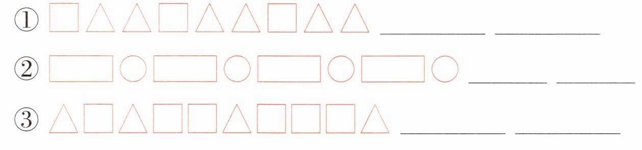 (1) 把圆涂成红色,把三角形涂成绿色,把正方形涂成黄色,把长方形涂成蓝色。