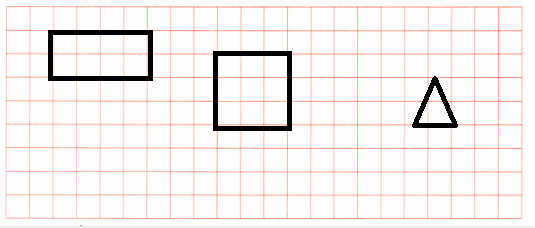 (1) 在下面的方格纸上画出一个长方形、一个正方形和一个三角形。
