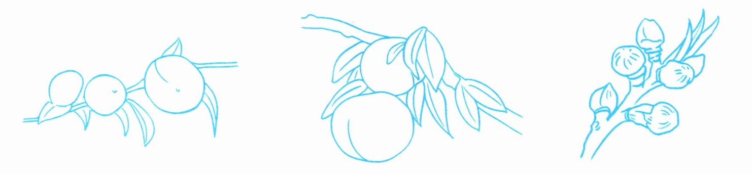 菲菲伯伯家的果园里种了许多桃树。瞧,这些桃子成熟啦!