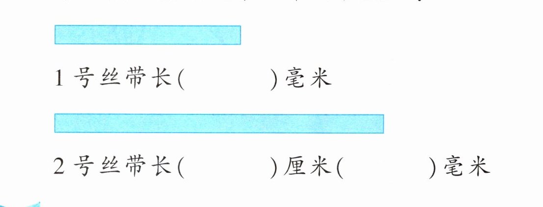 和菲菲一起用巧手量一量。菲菲做了两条丝带,请你用直尺帮她量一量这两条丝带的长度吧!