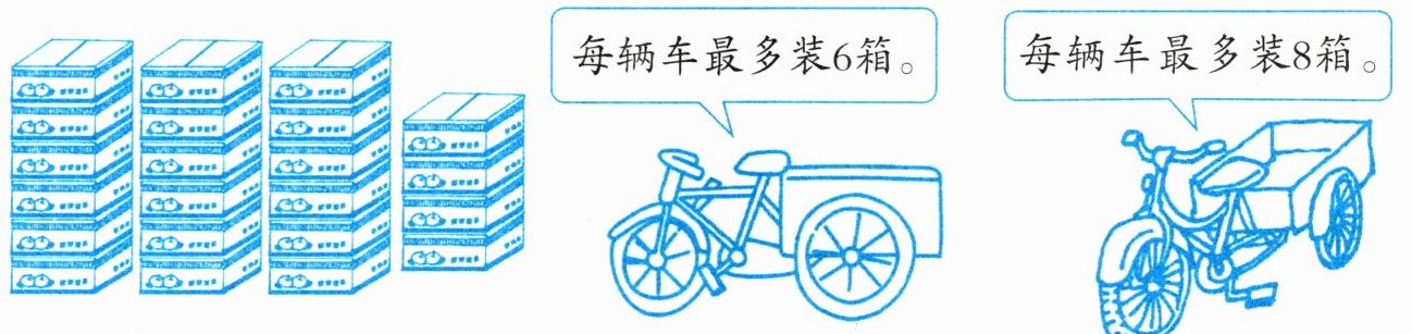 $26÷8 = 3$(辆)$\cdots\cdots2$(箱),$3 + 1=4$(辆)。
