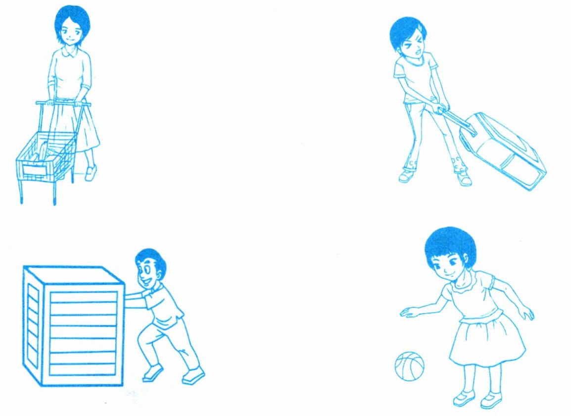 2 下面图中的动作是向哪个方向用力的?请你用“→”标出来。