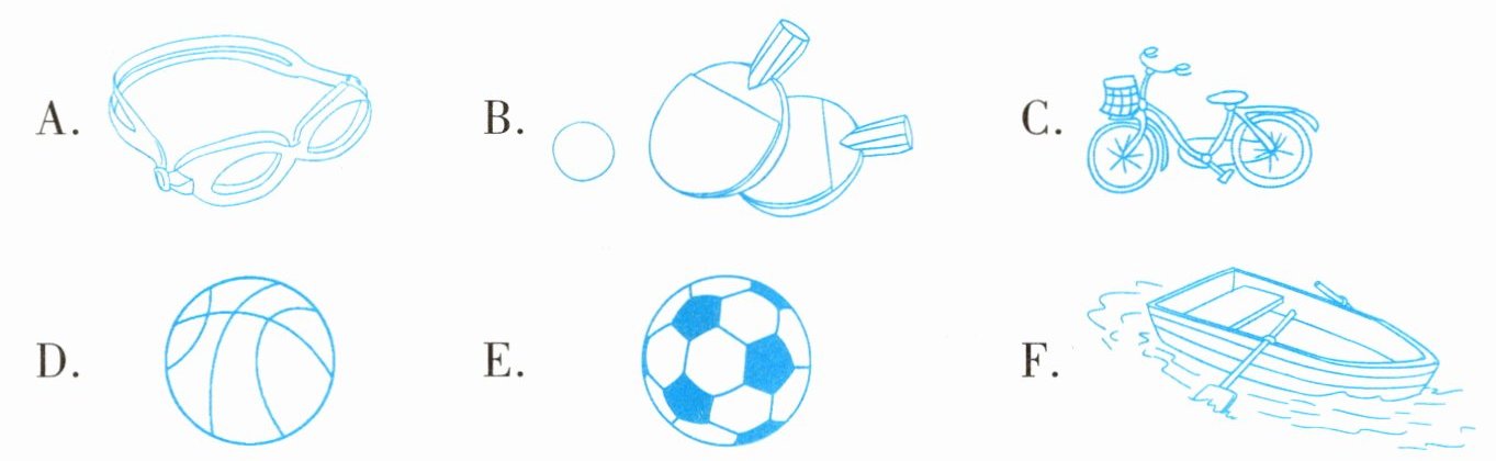 乐乐和他的朋友们相约一起运动。请将他们每人喜欢的运动和对应图片相匹配。