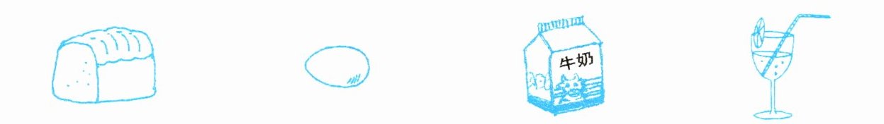 1 这是乐乐比较喜欢的早餐,请你写出它们的英文名称。