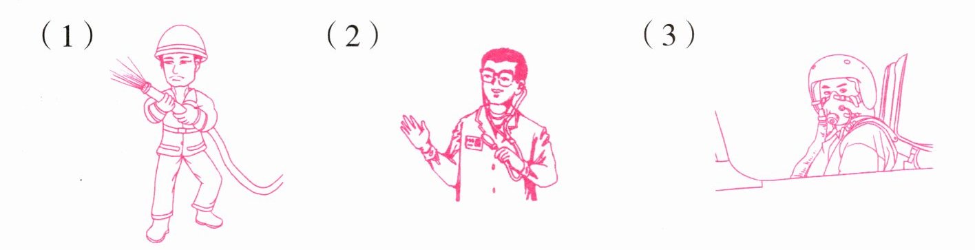 这次的派对主题是“When I grow up...”(当我长大后……)。乐乐长大后非常想当一名医生,因为医生可以帮助很多处在疾病中的人。下面图片里的职业,你都认识吗?请你帮乐乐选出对应的单词,并将序号填到下面的括号里。